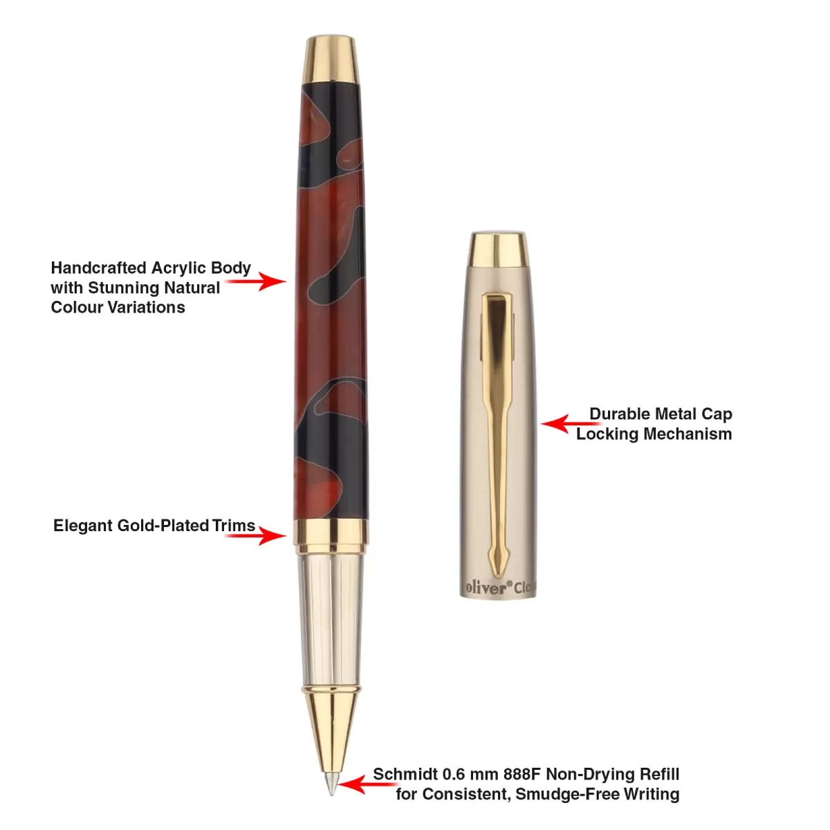 Be the first to review “Oliver Cloud Acrylic Brown G Roller Pen With T Box”